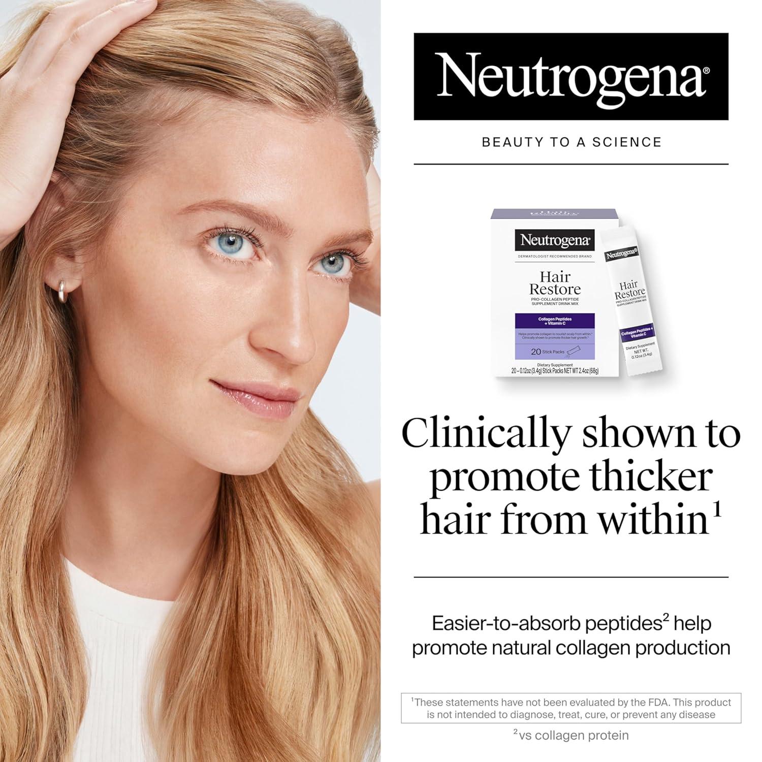 Neutrogena Hair Restore Pro-Collagen Peptide Supplement, Powder Drink Mix with Vitamin C Supports Keratin Production, Nourishes Scalp from Within & Promotes Thicker Hair, 20 Stick Packs