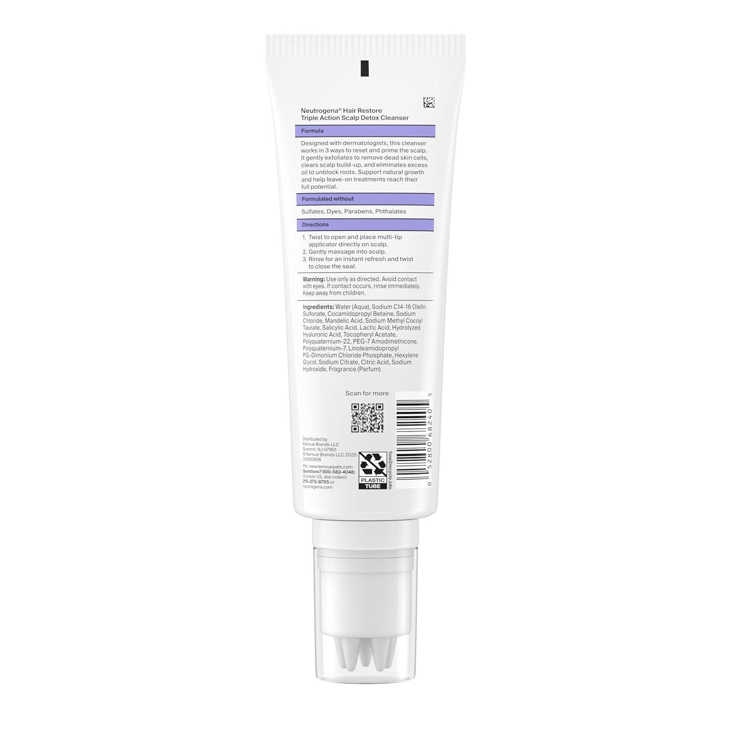 Neutrogena Hair Restore Triple Action Scalp Detox Cleanser, Triple Acid Scalp Detox & Clarifying Treatment to Remove Dead Skin Cells, Clear Scalp Buildup, Sulfate-Free, 8 fl. oz